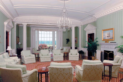 glass offering views of the south lawn and water. Here one can